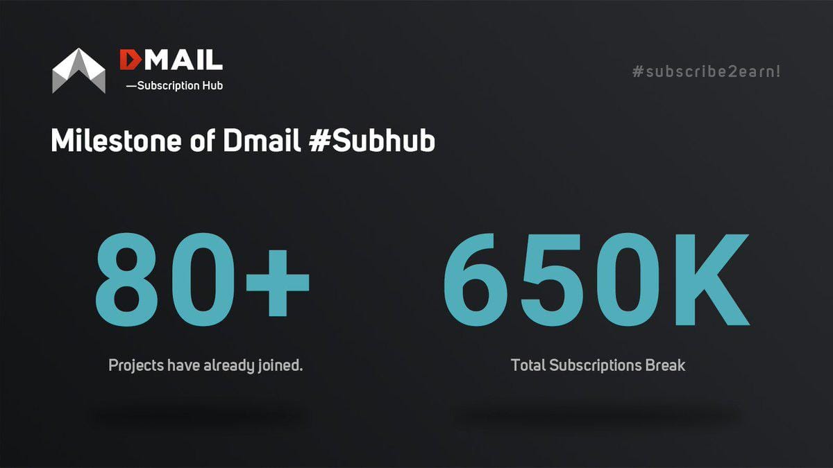 - Within a week of its launch, DmailSubhub attracted over 80 projects and amassed over 650K subscribers.