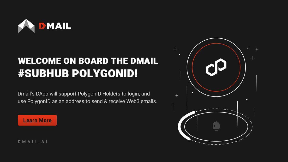 22. Welcome to Dmail SubHub! Unlock instant updates and exclusive insights on PolygonID with Dmail. The Dmail DApp will soon support PolygonID holders for login and use PolygonID as an address for sending and receiving Web3 emails.