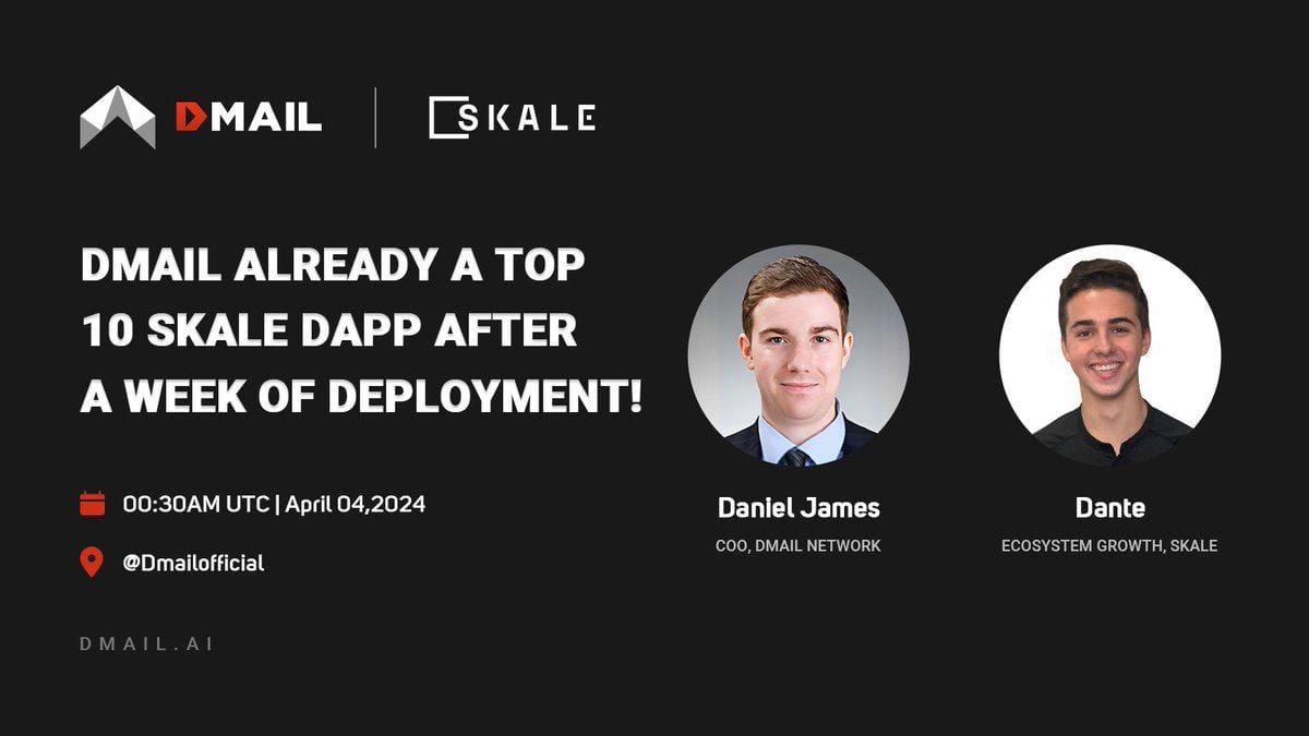 - Dmail was honored to invite the SKALE team to join our Twitter Space. Dante, as a guest speaker, delivered an excellent presentation and provided a detailed overview of our collaboration.
