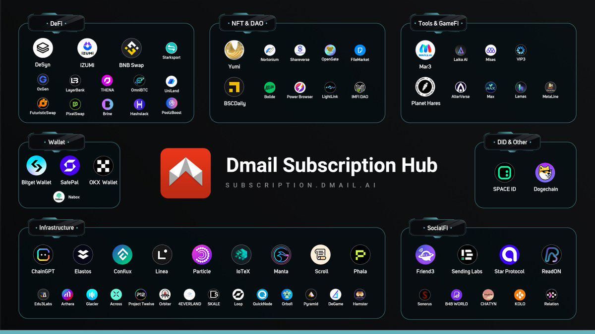 - Dmail is expanding its product suite and has made excellent initial progress with the SubHub- a B-end product designed to connect users and businesses in web3 by allowing messages to be sent directly to subscribers' wallets.