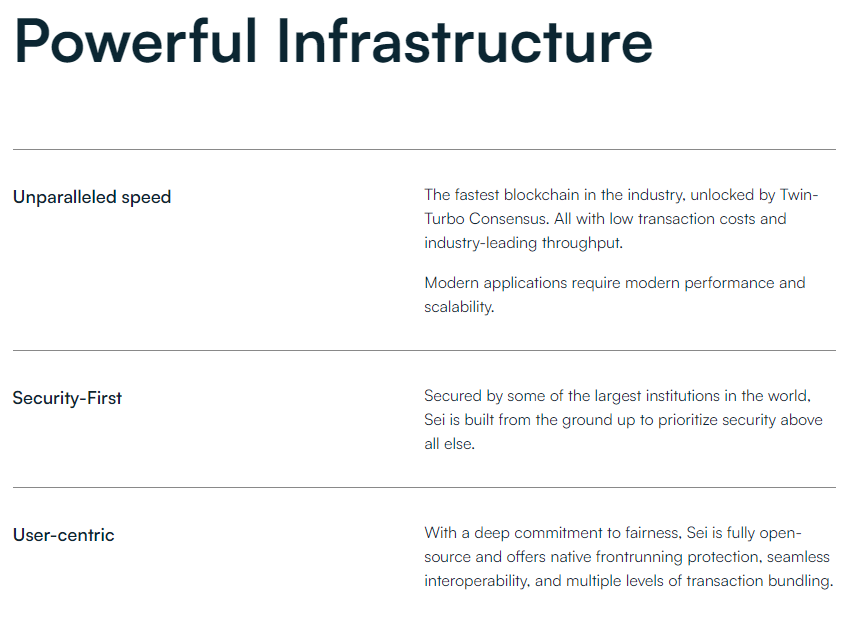 - Sei’s unique chain-level optimizations enable decentralized exchanges and trading apps in NFTs, gaming and DeFi to offer the best user experience.
