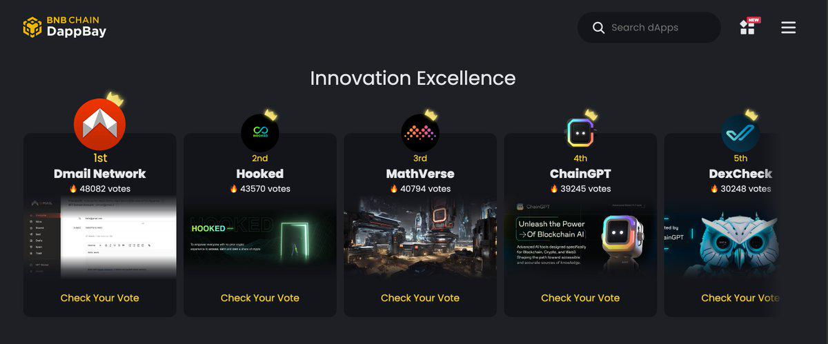 4. Dmail was honored to be voted as the first-place winner in the Innovation Excellence track at the BNB Chain Ecosystem Catalyst event.