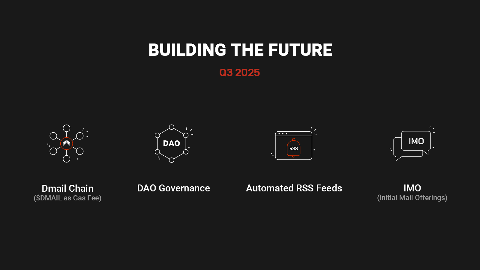 Launching our own blockchain takes Dmail to the next level. With $DMAIL as the native gas token, users will enjoy faster, cheaper, and more secure transactions, making every interaction on the platform seamless and cost-effective. - DAO Governance: