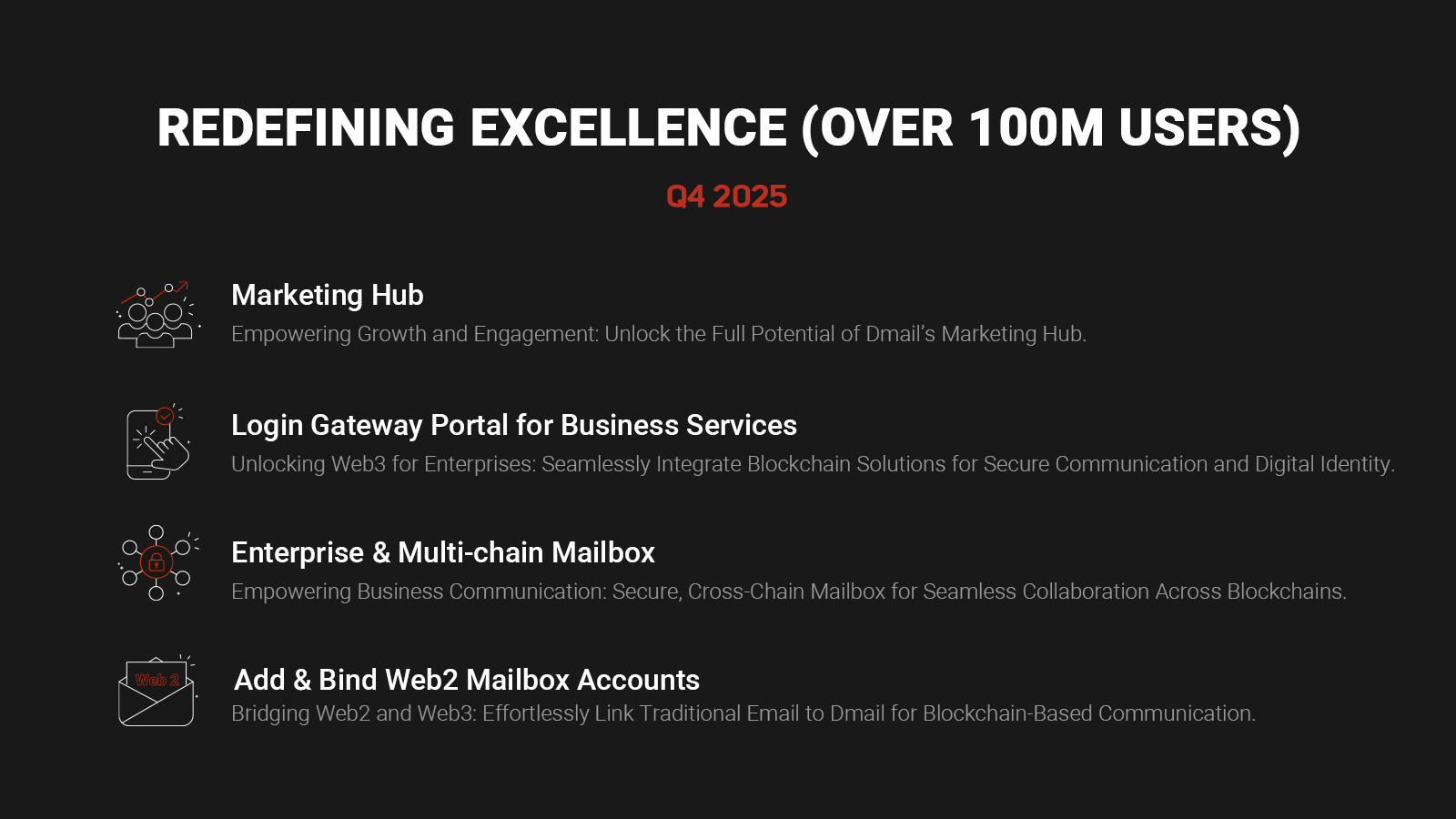 Here’s a closer look at how each feature in our updated roadmap will transform the way users interact with the Dmail platform.