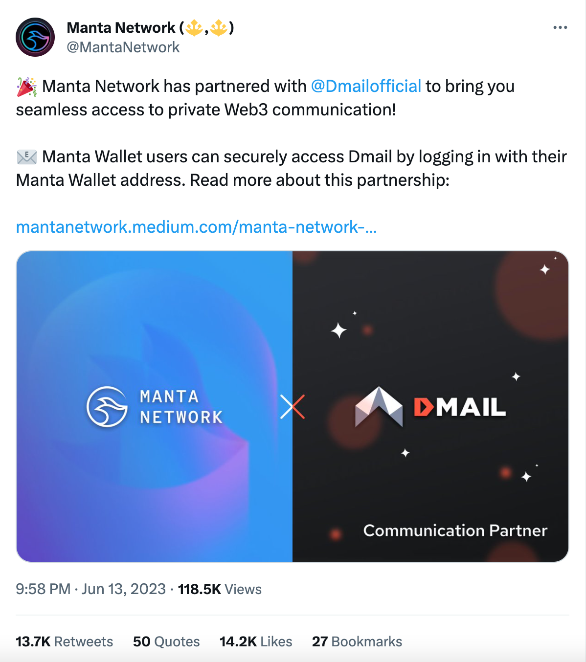Manta Network Partners with Dmail: Seamlessly Access Dmail via Manta Wallet