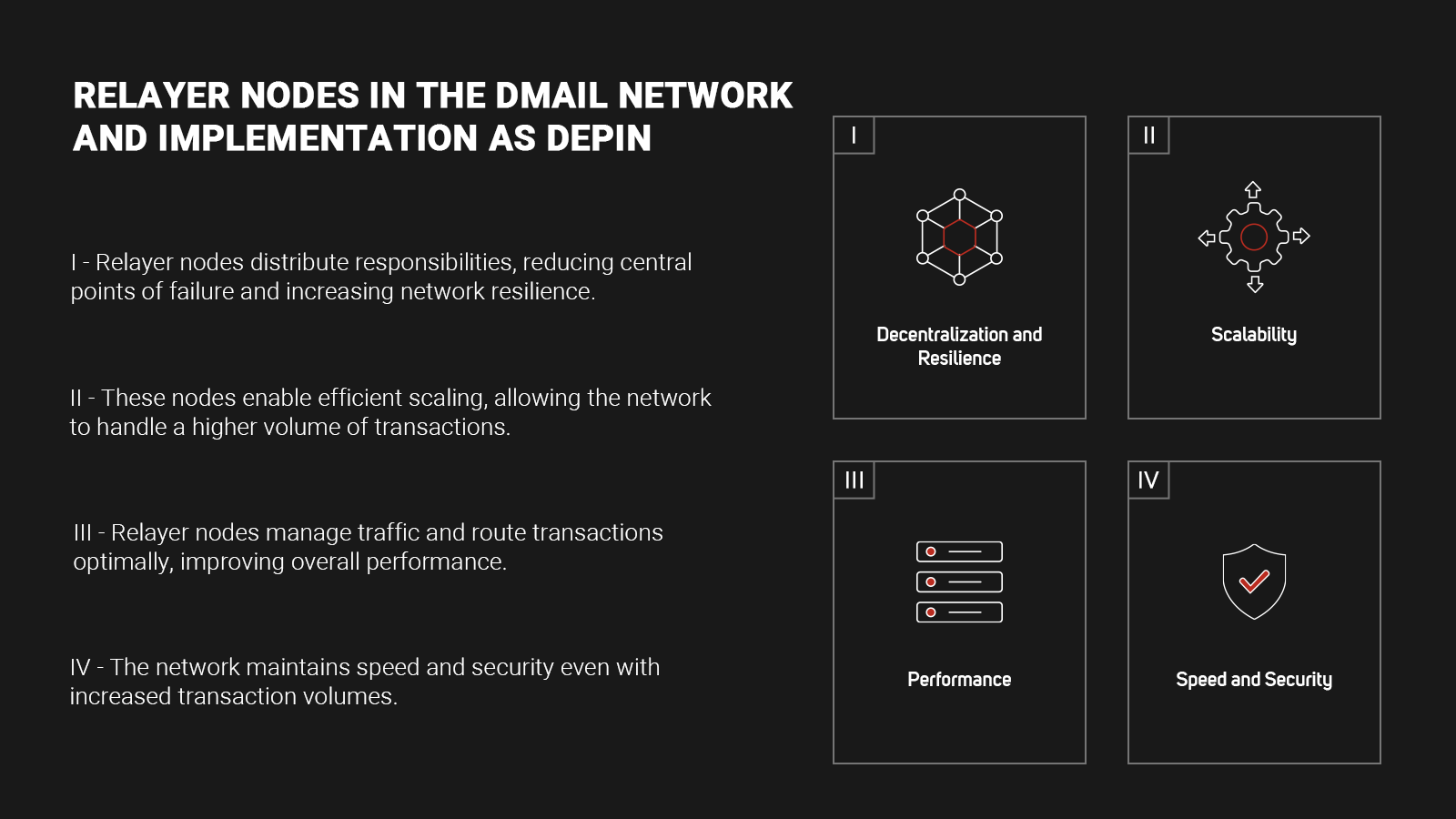 In the context of the Dmail Network, relayer nodes are crucial for enhancing both decentralization and performance. By distributing responsibilities across multiple nodes, relayer nodes reduce the risk of central points of failure and enhance the network's resilience. They enable the network to scale efficiently, handling a higher volume of transactions without compromising speed or security. Additionally, with relayer nodes managing traffic and routing transactions optimally, the overall performance of the Dmail Network is significantly improved, ensuring fast and reliable communications.