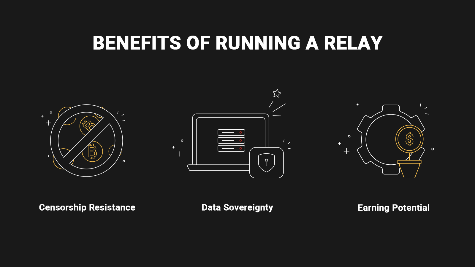 - Censorship Resistance: By running your own relay, you eliminate dependence on centralized entities that could censor or restrict access to your communications.